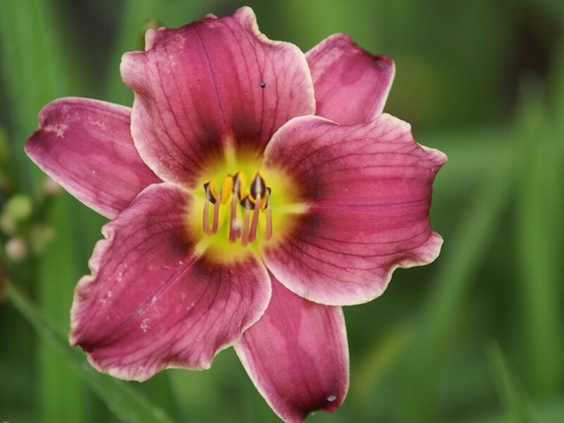 kleinblumige Taglilien mit gut verzweigten Stielen, reichblütig. Lavendelfarbige Blüten, der dunklere Augenring um den gelben Schlund hebt die Farbigkeit, sie passt sich gut in kühlfarbige Kombinationen ein